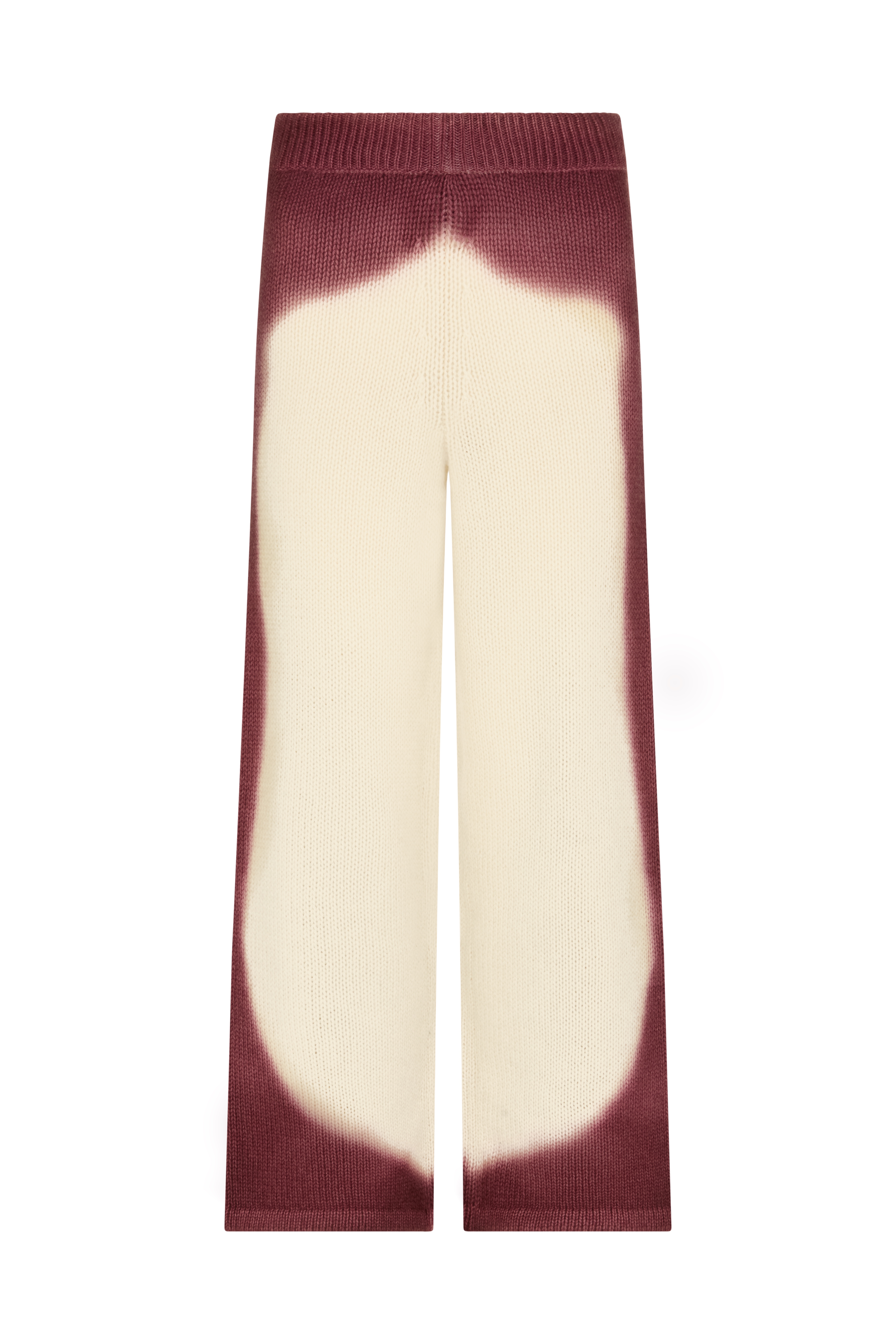 DESCRIPTION: CASHMERE KNIT TROUSERS WITH FRINGE DETAIL AND BATIK HAND-DYE